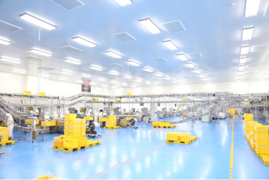要進(jìn)入乳制品生產(chǎn)車(chē)間前,我們先踩住鞋套機(jī)穿上鞋套、換上白大褂、戴上衛(wèi)生帽后,在洗手池旁按著洗消毒圖示完成了清洗、干燥、消毒等工作,然后才被引向生產(chǎn)車(chē)間。進(jìn)入前,我們先一個(gè)一個(gè)地通過(guò)了一個(gè)封閉的方寸之間后來(lái)才知道就是風(fēng)淋室,風(fēng)吹起,我們被要求抬起手臂不停地轉(zhuǎn)身數(shù)秒。原來(lái),這個(gè)過(guò)程叫“風(fēng)淋”——用強(qiáng)勁潔凈的空氣,由可旋轉(zhuǎn)的噴嘴從各個(gè)方向噴射到人身上,快速有效地清除掉附著在衣服上的灰塵、頭發(fā)、雜屑等。在生產(chǎn)車(chē)間的預(yù)處理現(xiàn)場(chǎng),一塵不染的環(huán)境下其實(shí)在需要員工付出不少辛苦的前提下,也需要有匹配得當(dāng)?shù)膬艋O(shè)備。