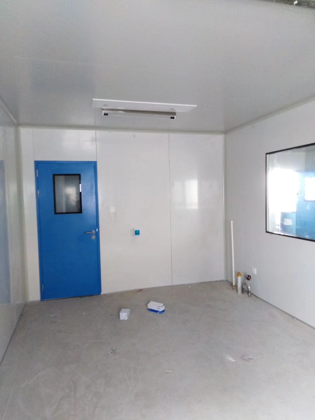 1、潔凈室墻、頂板材料一般采用50mm厚的夾芯彩鋼板、凈化專用的氧化鋁型材制造。門采用凈化密閉門,窗采用鋁合金玻璃固定窗。