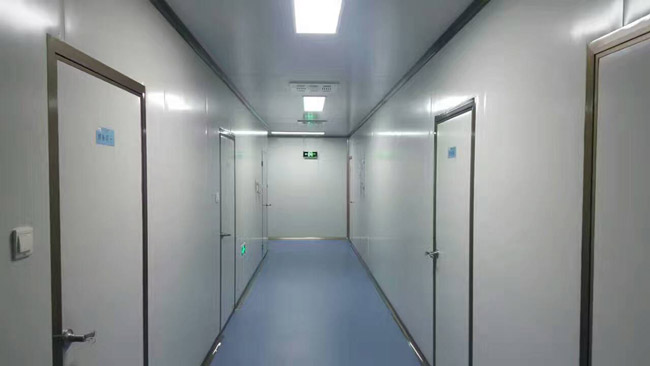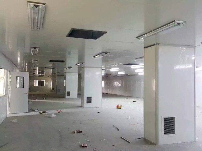 1).結(jié)構(gòu)部分一般凈化廠房墻、頂板材一般多采用50mm厚的夾芯彩鋼板制造,其特點(diǎn)為美觀、剛性強(qiáng)、保溫性能好、易施工。圓弧墻角、門、窗框等一般采用專用凈化專用型材制造。