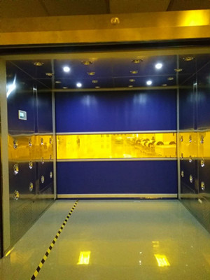 快速卷簾門(mén)貨淋室為起到隔絕室內(nèi)外空氣,雙門(mén)具有電 子互聯(lián)鎖功能,起到緩沖、氣閘及吹淋的作用。